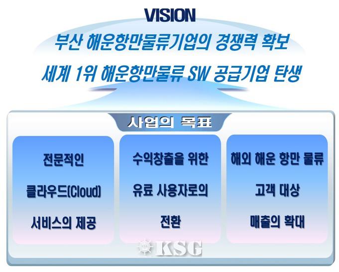 현재 수행 중인 클라우드 기반 하역작업 계획 수립 및 데이터교환 서비스 개발사업은 21세기 첨단 해양 거점도시라는 비전을 가지는 부산시의 ‘부산발전 2020 비전’ 전략에 크게 부합하며 현 정부 140대 국정과제 중 IT 및 SW 융합을 통한 주력산업 구조의 고도화와 해운 선진화의 해외진출 지원에 적합한 사업으로 평가받고 있다.