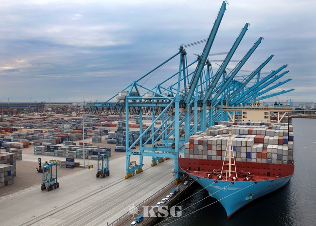 25일 해운업계에 따르면 덴마크 선사 머스크의 1만3490TEU급 컨테이너선 <머스크에센>(Maersk Essen...