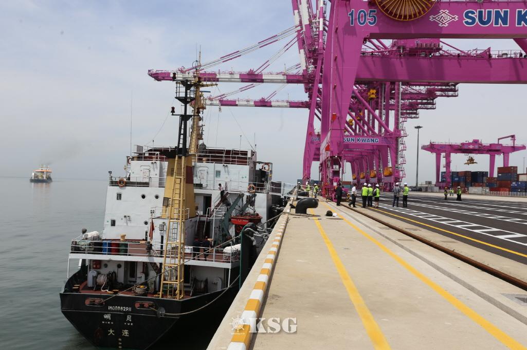 ▲인천신항이 개장한 1일 오전, 신항 선광신컨테이너터미널(SNCT) 1번 선석에 처음 접안한 중국국적 상업모선 < 밍유 >호에 대한 하역작업이 시작되고 있다. < 밍유 >호는 2400t급 소형 컨테이너선이며, SNCT에서 중국 단둥과 인천항 간 주 2항차 서비스를...