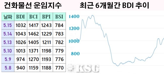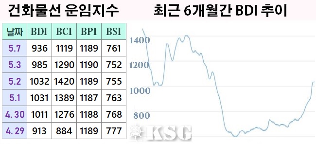 BDI 1032포인트…노동절 연휴 영향, 전반적으로 조용