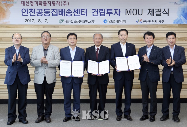 인천시는 7일 G타워 투자유치센터에서 대신정기화물자동차, 서구와 함께 대신정기화물자동차인천 공동집배송센터 건립 투자협약(MOU)을 체결했다고 밝혔다.