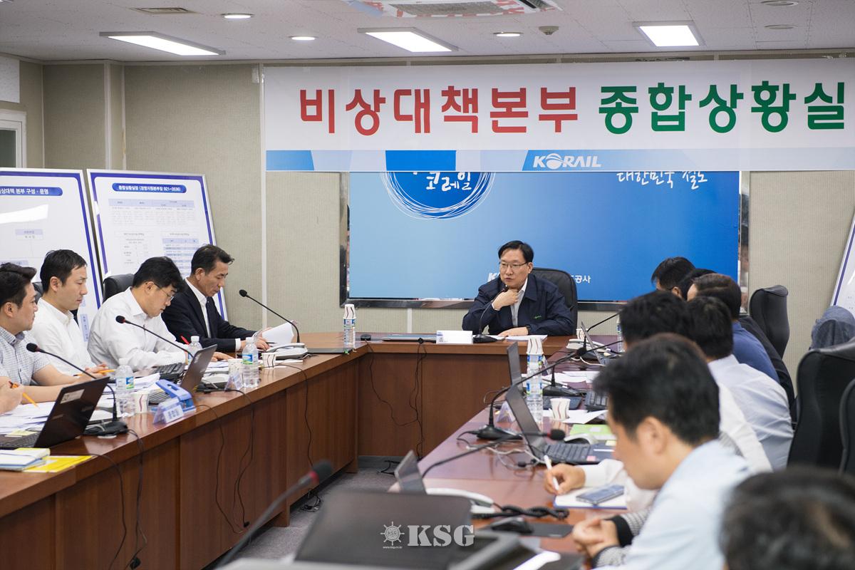 27일 홍순만 코레일 사장은 서울사옥에 마련된 비상대책본부 종합상황실에서 열차운행 조정, 대체인력 투입, 안전대책 수립 등 비상수송대책 전반을 지휘했다.