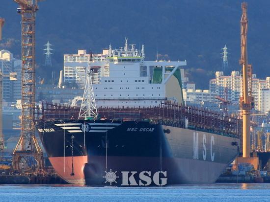MSC는 1만9224TEU급 < MSC 오스카 >를 내년 1월 대우조선해양으로부터 인도받는다. 이번 신조선은 지난해 7월, 중국 민생은행이 대우조선해양에 발주한 것이다. MSC는 이번 신조선을 17년간 용선하는 형태로 운...