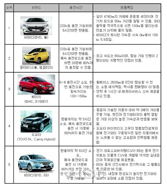 ▲중국 전기자동차 판매 순위 = 자료제공 코트라 시안무역관