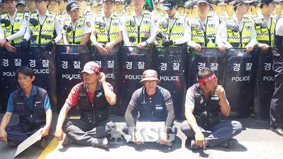 ▲화물연대 울산지부 조합원들이 시위를 하는 모습 = 사진제공 화물연대