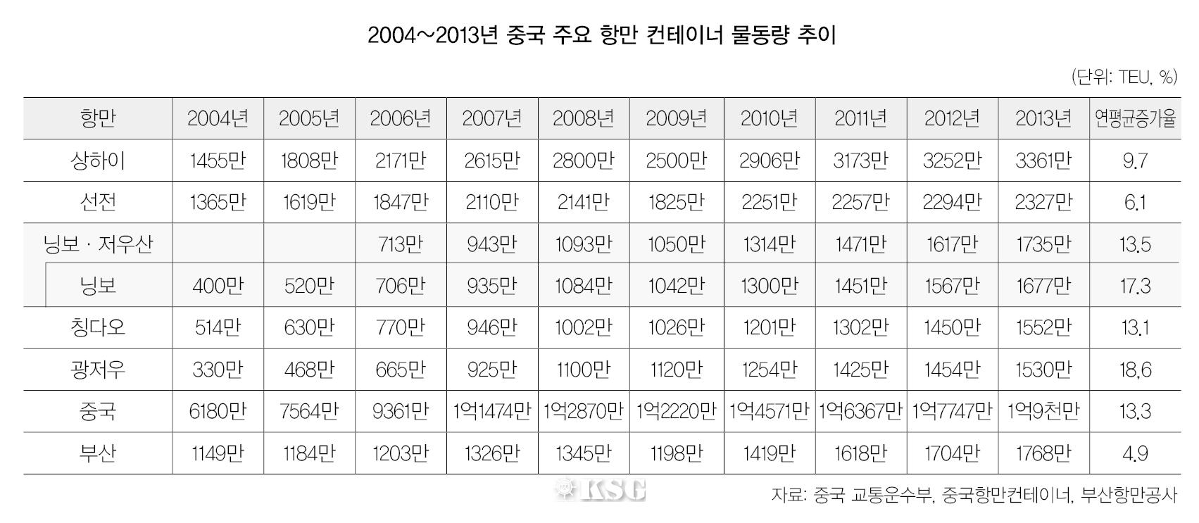 - 올해 1분기 닝보·저우산항의 물동량은 450만2천TEU를 기록하며 443만TEU를 기록한 부산항에 앞섰다. 물동량 증가율도 부산항이 전년 대비 1.4%을 기록한 반면, 닝보·저우산항은 8.2%로 높은 증가세를 보였다.