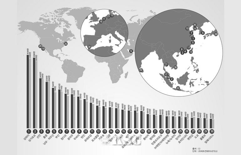 세계 컨 항만 5위 쟁탈전 ‘후끈’