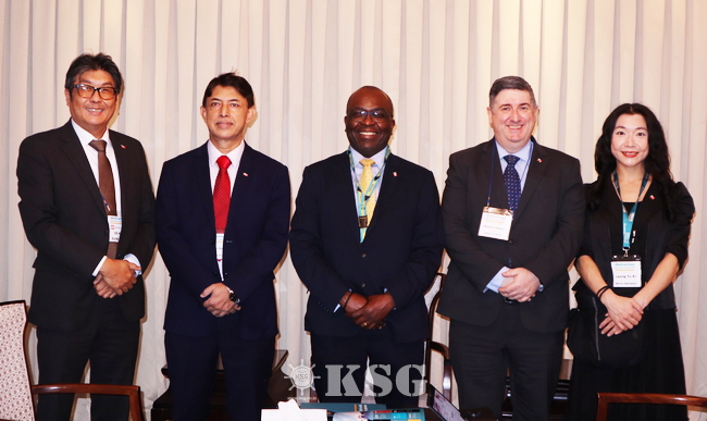 ▲왼쪽부터 벤라인코리아 김동수 지사장, 바하마기국 자한지르 후세인 아시아대표, 드웨인 허치슨 청장, 스티븐 키넌 검사담당, 령유키 홍콩수석비서관