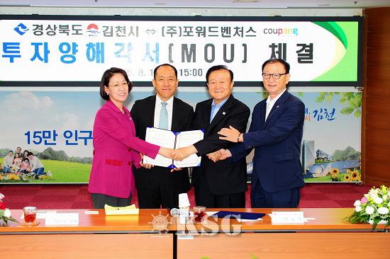 쿠팡을 운영하고 있는 포워드벤처스는 지난 13일 김천시청에서 김천시와 물류기지 건립을 위한 투자 양해각서(MOU)를 체결했다.