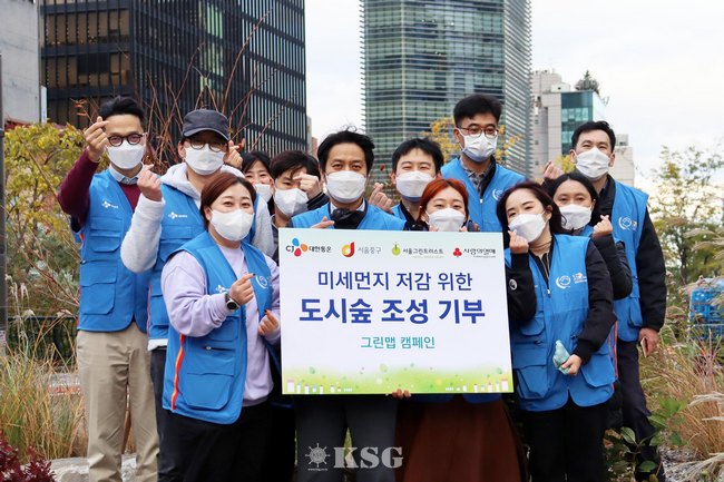 CJ대한통운은 지난 10일 서울시 중구, 서울그린트러스트와 함께 서울시 중구 삼각동에서 미세먼지 저감 및 도심경관 향상을 위한 ‘CJ대한통운 도시숲 조성’ 행...