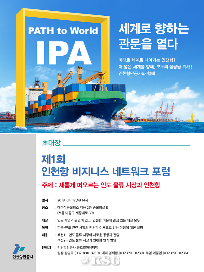 인천항만공사(IPA)가 신흥 물류시장인 인도와의 교류를 늘리기 위해 포럼을 개최한다.
