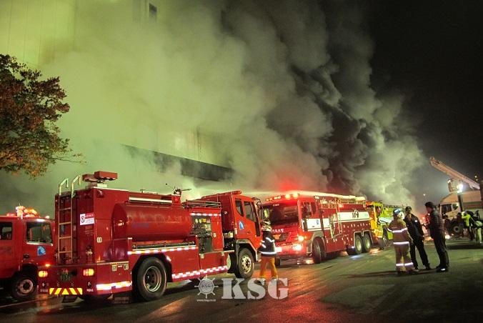 ▲소방관들이 화재가 발생한 한국복합물류A동 화재 진압을 하는 모습 = 사진제공 군포소방서