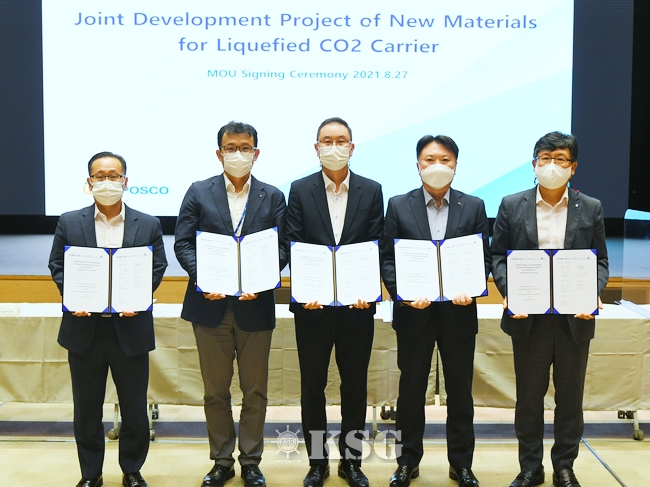 현대미포조선 한국조선해양 포스코는 지난 27일 영국 로이드선급, 라이베리아기국과 LCO2 운반...
