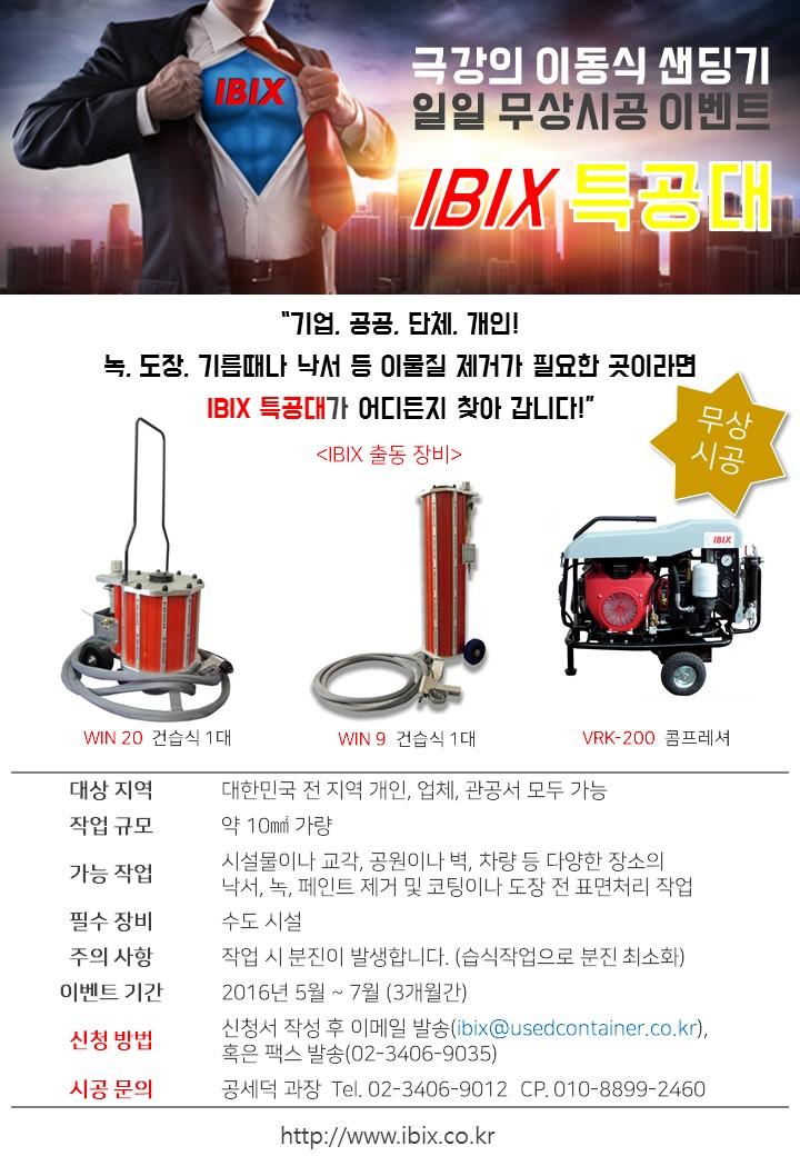 컨테이너 매매 임대 전문기업 극동MES가 IBIX 샌드블라스트(모래로 코팅제를 제거하는 작업·sand blast) 무상시공 이벤트를 진행한다.