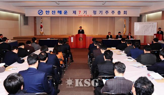 한진해운은 18일 오전 여의도 본사 사옥에서 석태수 사장을 비롯해 회사 경영진 및 주주 등 약 150여 명이 참석한 가운데 제7기 정기 주주총회를 개최했다.