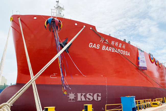 가스선 전문선사인 KSS해운은 22일 울산 현대중공업에서 8만4000CBM급 초대형 가스선(VLGC) <가스갈라>(GAS GALA)호 명명식을 열었다고 밝혔다.