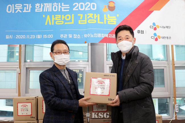 CJ대한통운은 지난 23일 서울시 중구 약수노인종합복지관에서 코로나19 취약계층 지원 및 지역 상생을 위한 ‘2020 사랑의 김장김치 나누기’ 전달식을 가졌다고 밝혔다.