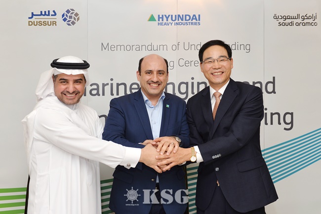 현대중공업은 지난 4일 사우디아라비아 국영 석유회사인 아람코, 산업투자공사인 두수르와 함께 선박 및 육상용 엔진 사업 합작에 관한 업무협약(MOU)을 체결했다고 밝혔다.