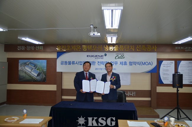 유진그룹 계열인 유진초저온(대표 양원돈)이 삼성SDS와 공동물류사업을 위한 전략적 업무 제휴 협약식(MOA)을 지난 12일 오성 초저온 물류센터 공사 현장에서 가졌다.