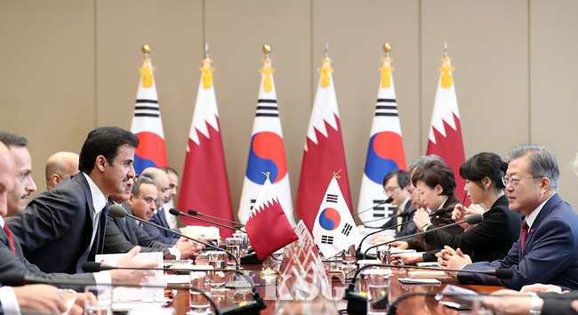▲지난 1월28일 열린 문재인 대통령과 타밈 빈 하마드 알 싸니 카타르 국왕의 한-카타르 정상회담 모습