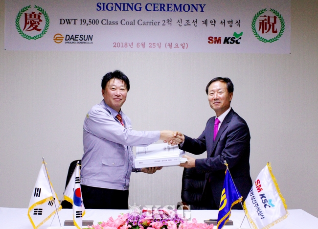 대선조선은 25일 오전 부산 영도조선소에서 대한상선과 자체 하역기(셀프언로더)를 장착한 1만9500t(재화중량톤)급 석탄운반선 2척 신조 계약을 체결했다고 밝...