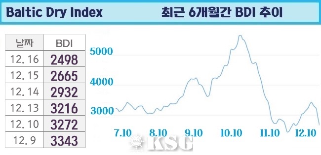 BDI 2498포인트…시황 급락에 따른 우려 고조