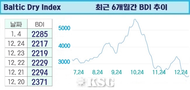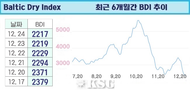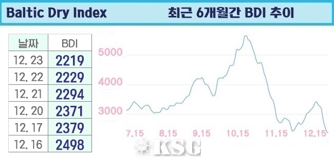 BDI 2219포인트…연말 조용한 모습 이어가