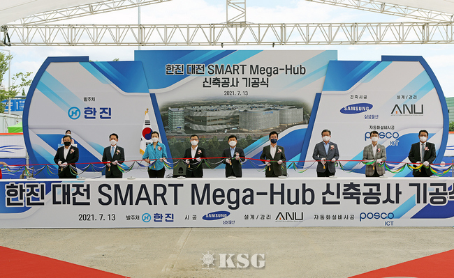 한진은 지난 13일 대전 스마트 메가 허브 터미널 구축을 위해 대전시 유성구 소재의 대전종합물류단지에서 기공식을 진행했다고 13일 밝혔다.
