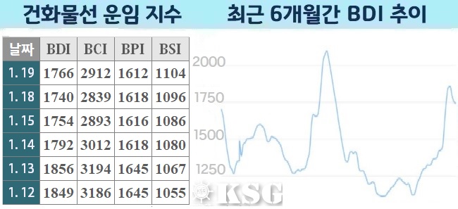 BDI 1761포인트…케이프, 주요 항로서 일제히 급등세